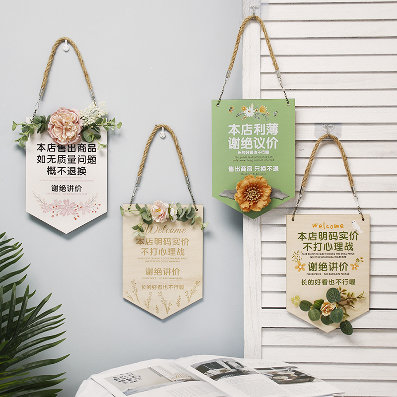 服装 店铺谢绝还价议价提示牌概利薄不讲价不换告示牌试衣间标识