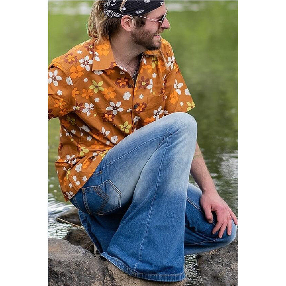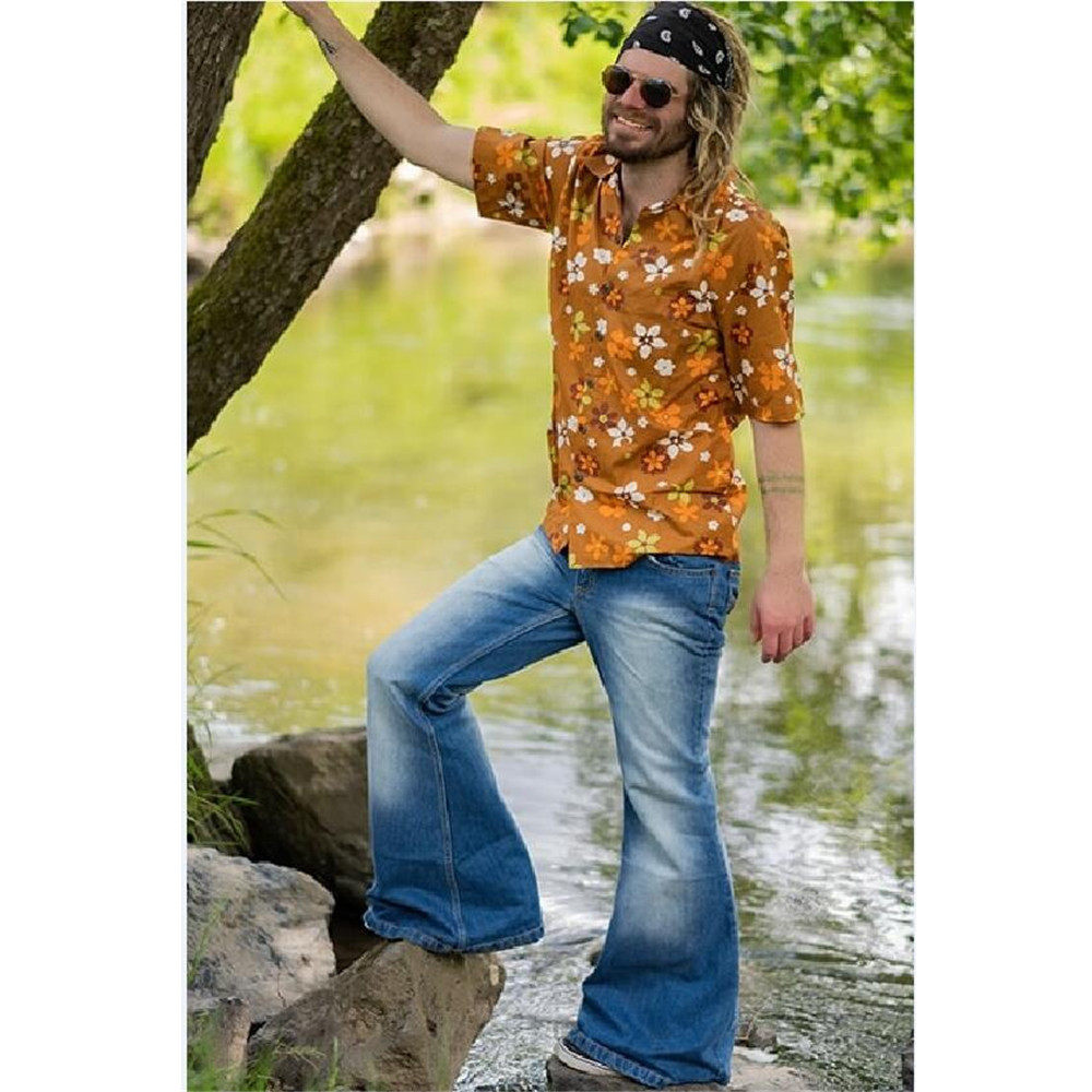Flared Retro 喇叭裤 复古男士 Pants高腰 Denim Men Waist High