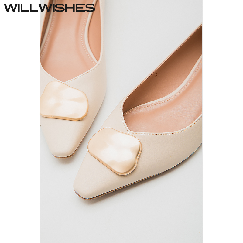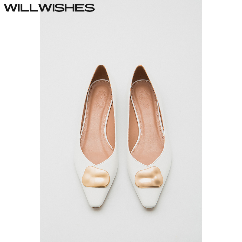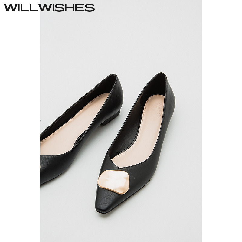 6697 WILLWISHES 女浅口尖头平底鞋 复古低跟单鞋 王玎设计法式