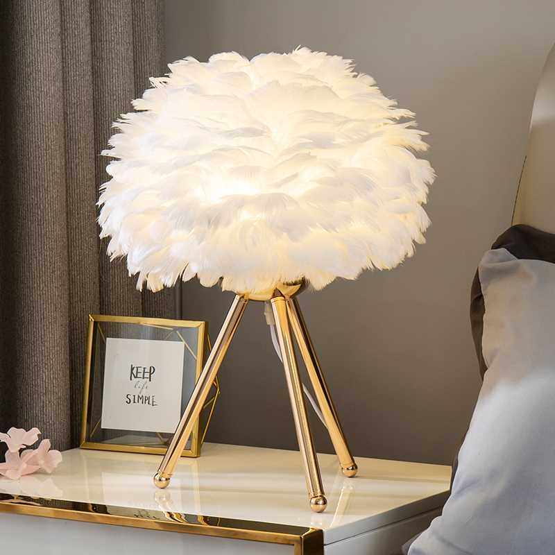 Lamp Modern Bedside Feather Room Table Living Bedroom