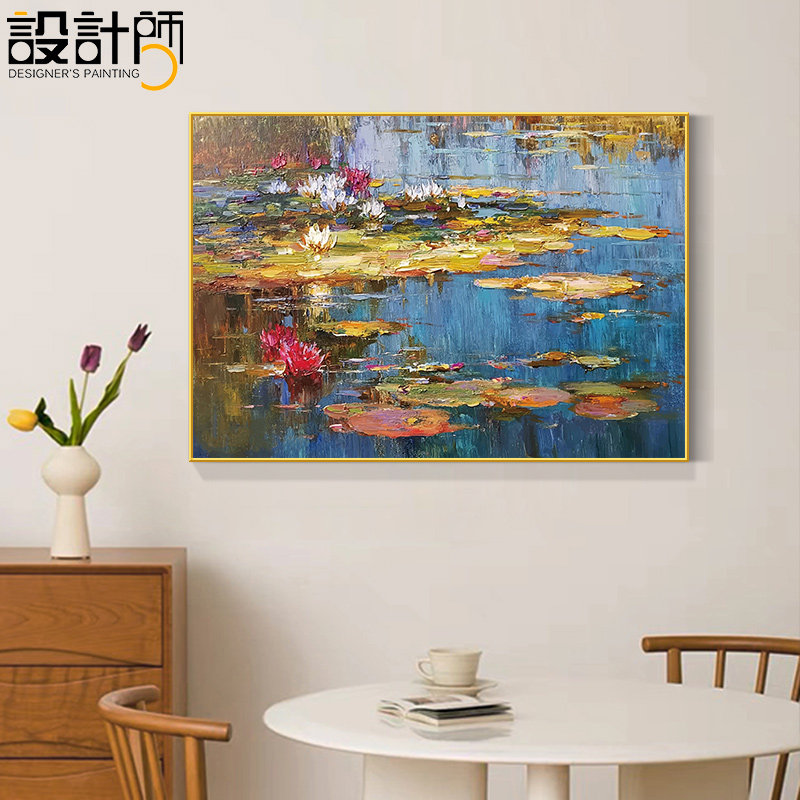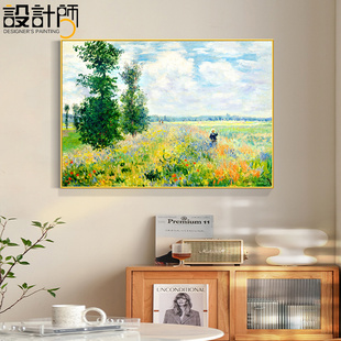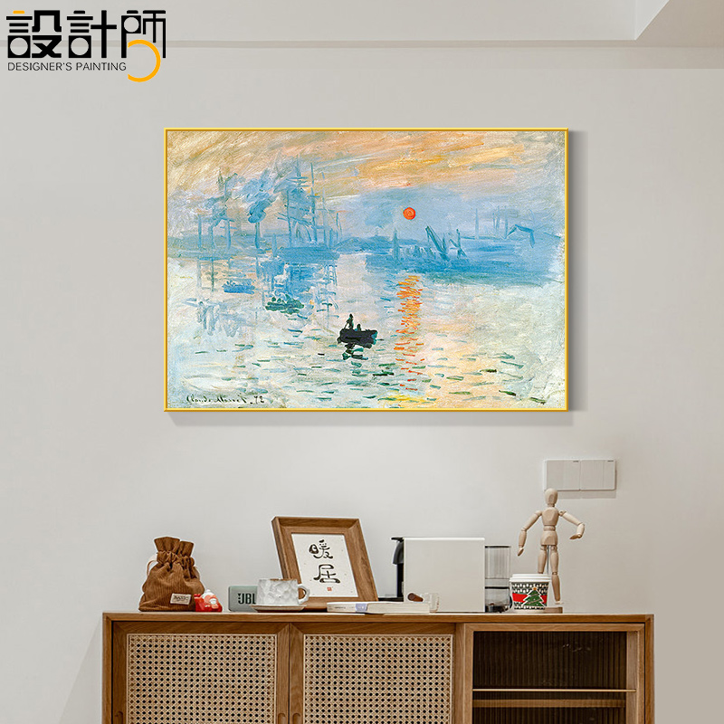 莫奈装 客厅油画壁画卧室床头挂画 饰画日出睡莲世界名画风景画横版