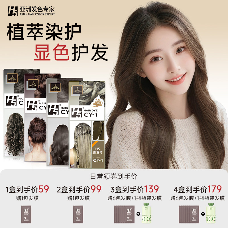 H5染发膏亚麻棕榛果灰棕染发剂男女植物纯在家染发 李宏毅代言