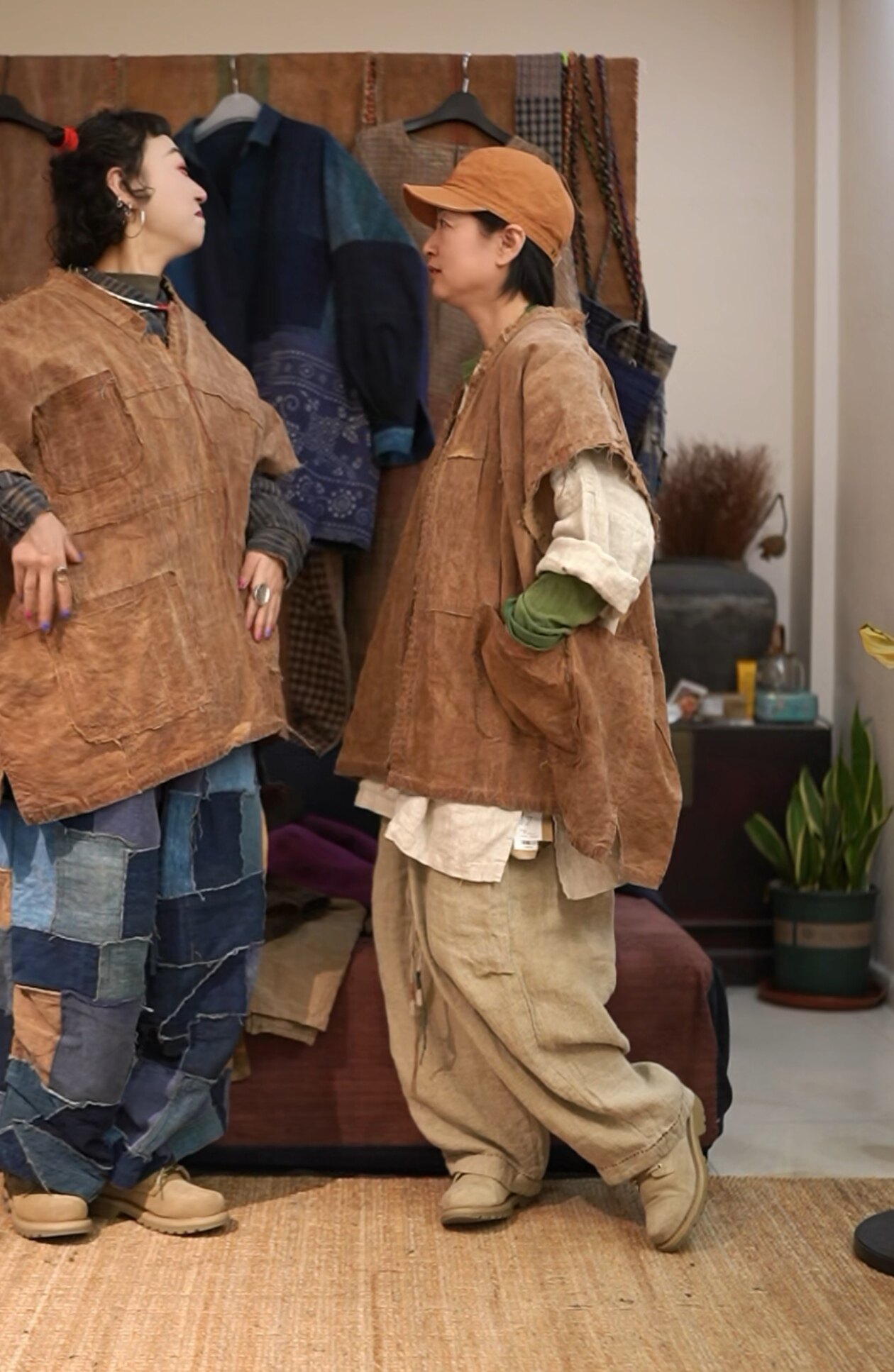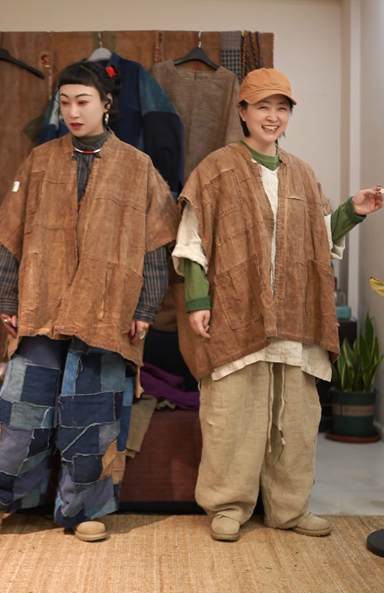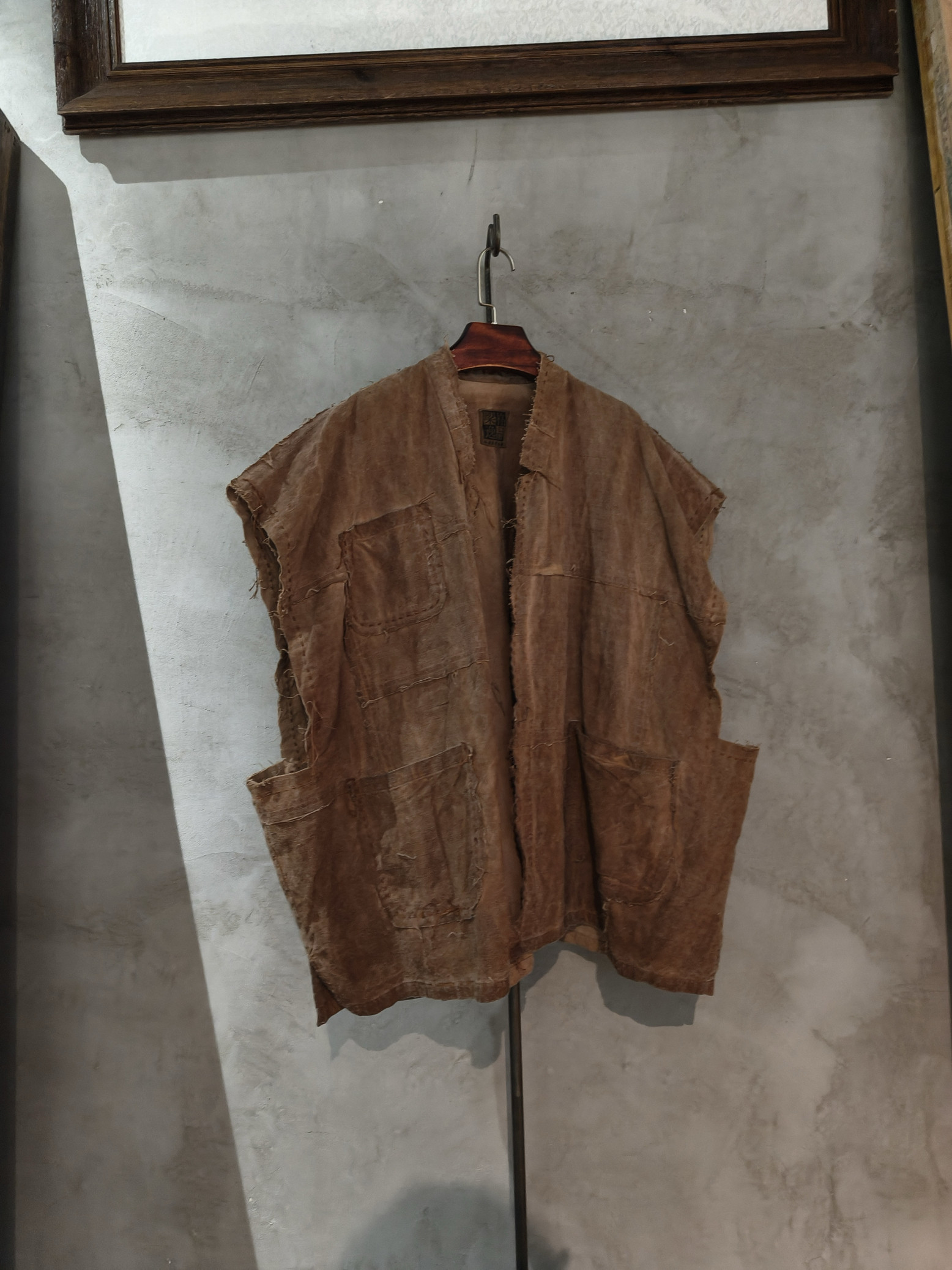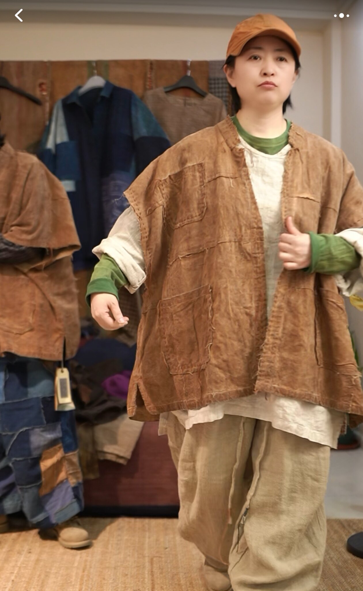 老布柿染外套斑驳手工C25s02016 笼开衫 沉香布衣草堂 长马甲大袖