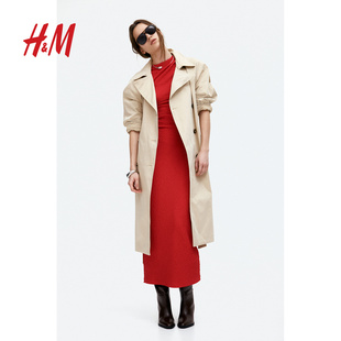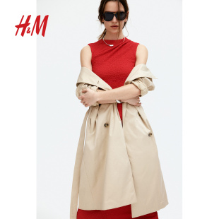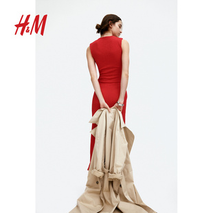 礼服垂褶紧身长款 圆领无袖 裙1268130 连衣裙春季 HM女装