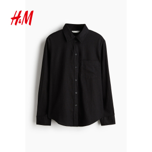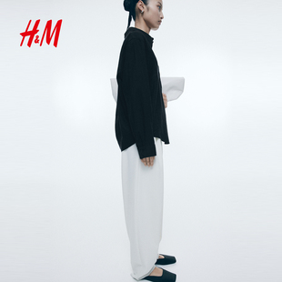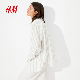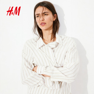 通勤麻质衬衫 HM女装 长袖 春夏翻折领松驰感亚麻法式 1213682 衬衫