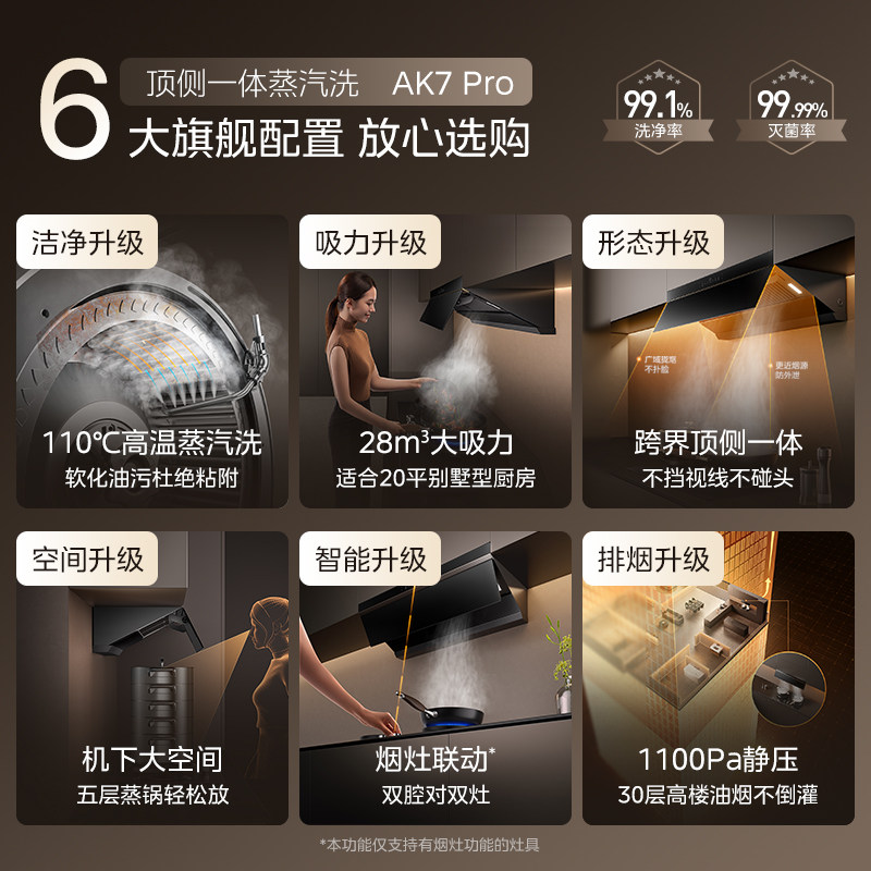 小西梅油烟机家用厨房顶侧超薄大吸力蒸汽洗2.0 美 旗舰新品
