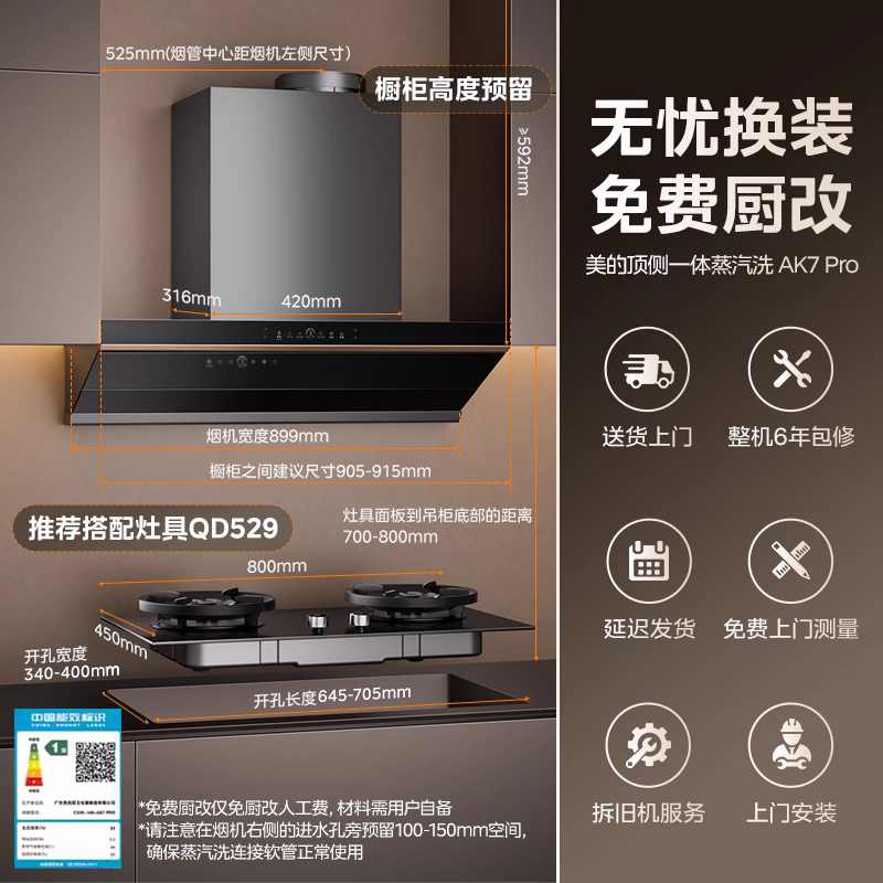 J39 官方旗舰店正品 美 抽油烟机J25SPRO以旧换新家用厨房侧吸式