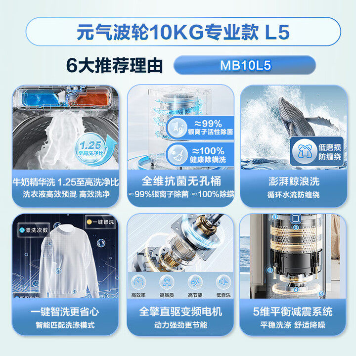 9kg波轮洗衣机全自动家用官方正品 6.5 5.5 以旧换新补贴美