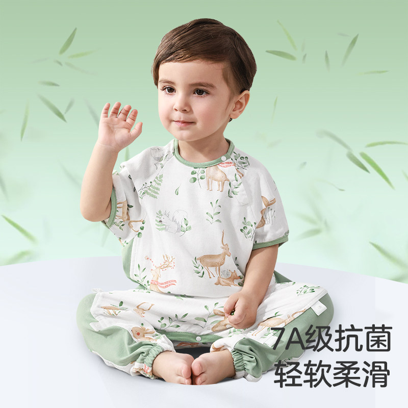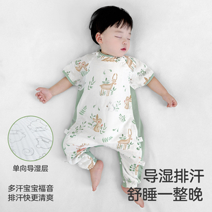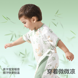 护肚睡衣宝宝防踢被子睡袋 儿童短袖 优萌竹棉婴儿纱布睡袋夏季 薄款