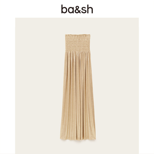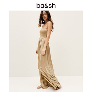 褶皱收腰长裙 微胖御姐气质斜肩荡领连衣裙女25年夏季 XZY 欣争艳