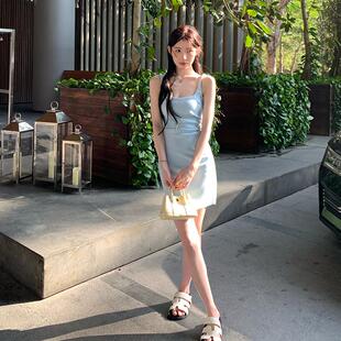 包臀短款 修身 裙子 stevens肯豆风方领吊带连衣裙女收腰夏季 alex