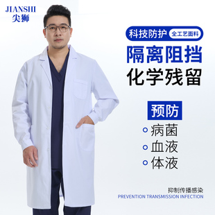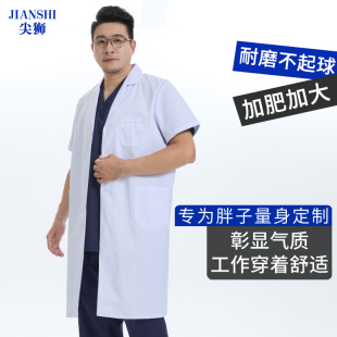 白大褂男医生长袖 工作服加肥加大学生实验室化学隔离衣防护服短袖