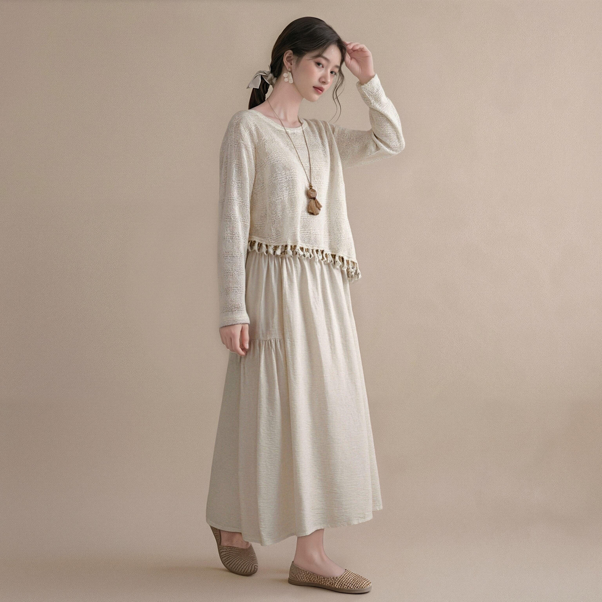 气质套装 西町村屋度假罩衫 法式 新款 XHAA10301 连衣裙两件套女春季