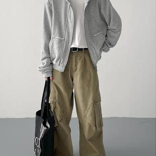 加绒卫衣针织打底衫 高街2025冬季 宽松休闲V领假两件长袖 美式 新款