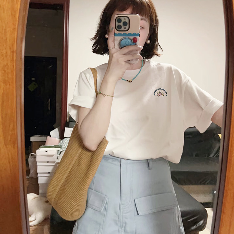 减龄 t恤女宽松大码 2026新款 小众设计感ins韩系小个子白色正肩短袖