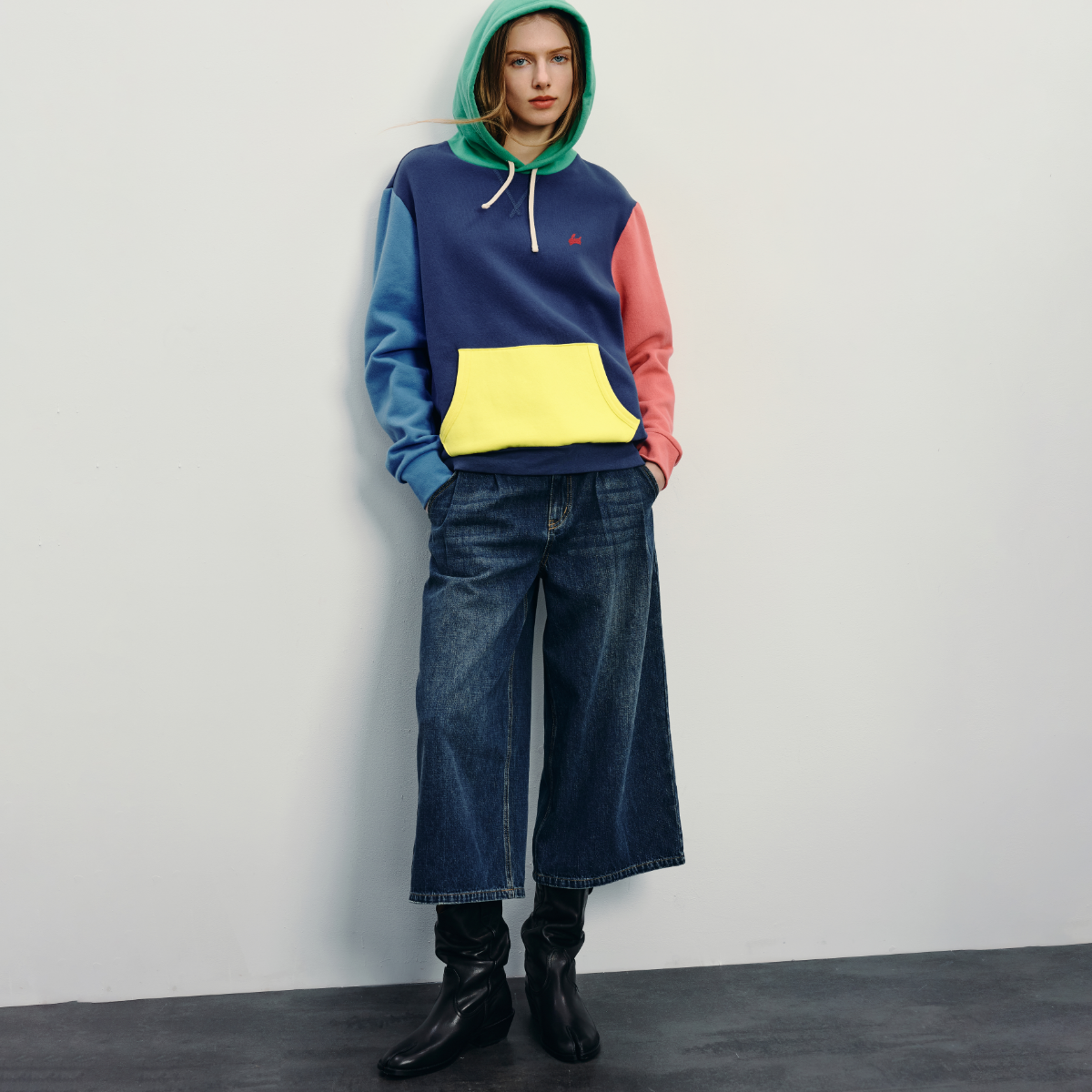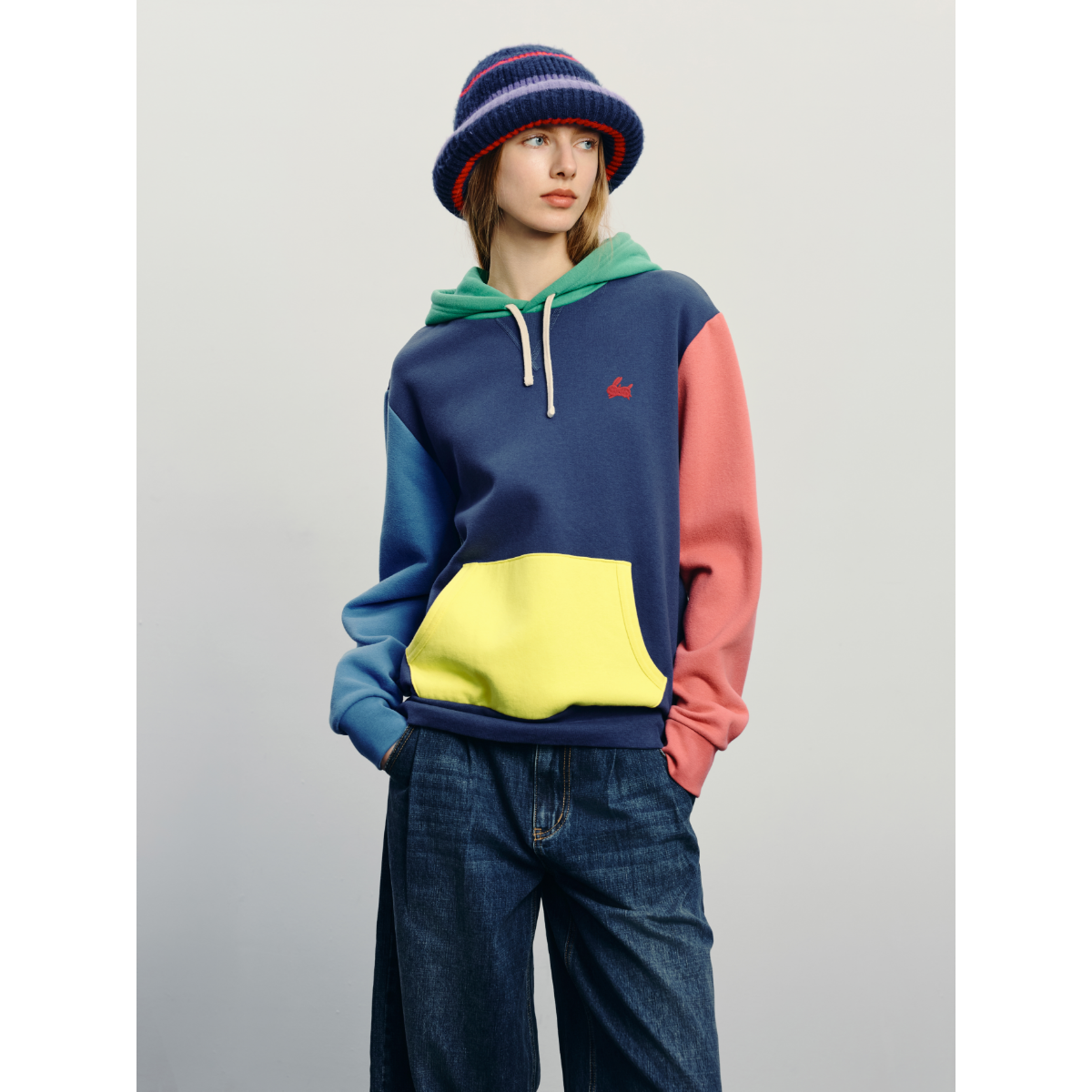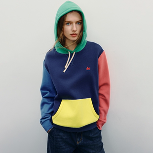 03090 女上衣2026春V3 HAVVA设计感美学拼色连帽卫衣长袖 宽松帽衫
