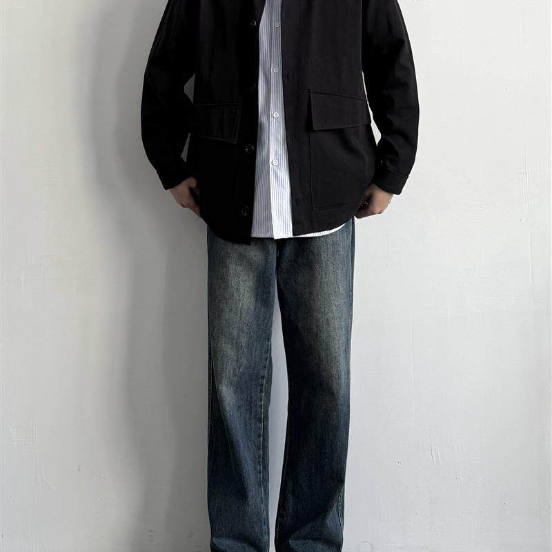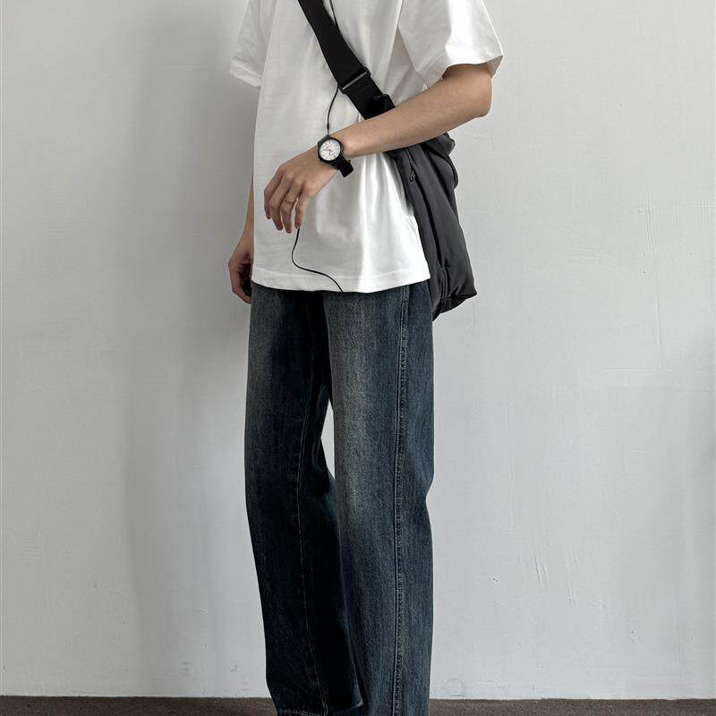 cleanfit休闲显瘦深蓝休闲长裤 ONUN 复古水洗做旧宽松直筒牛仔裤