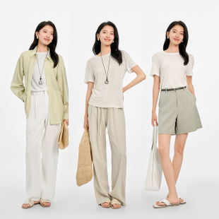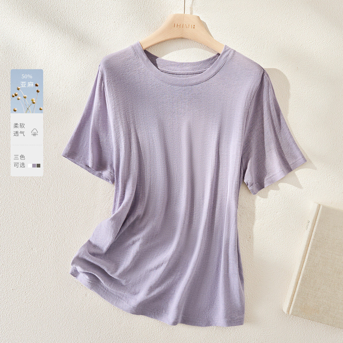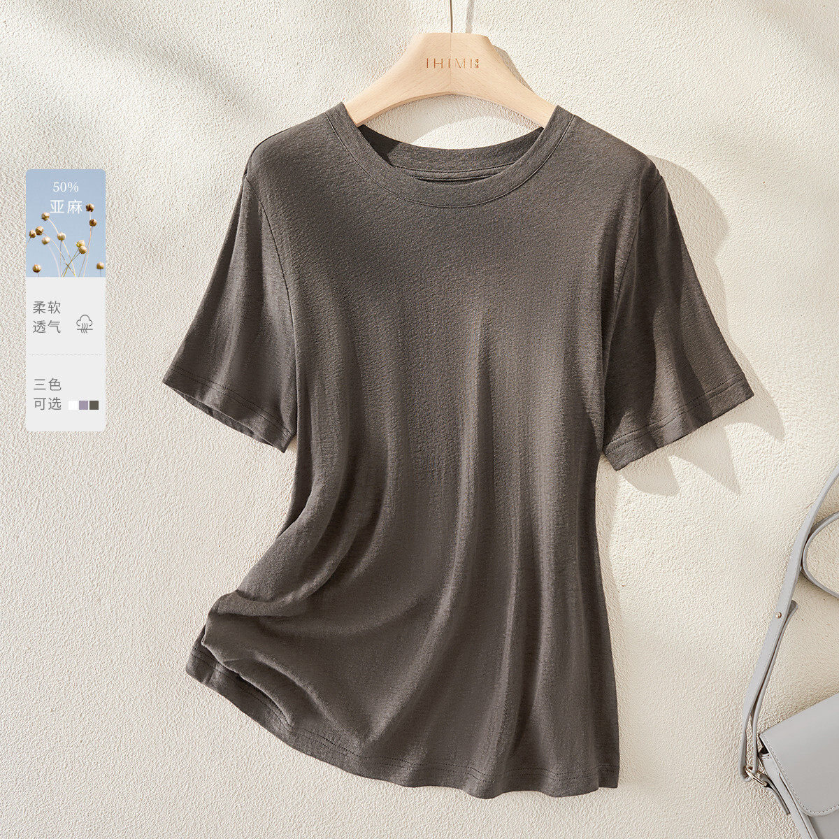 新款 T恤女2025夏季 天然亚麻短袖 纯色百搭舒适上衣 Nature系列