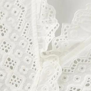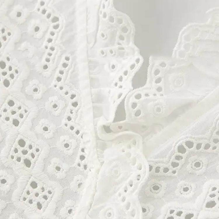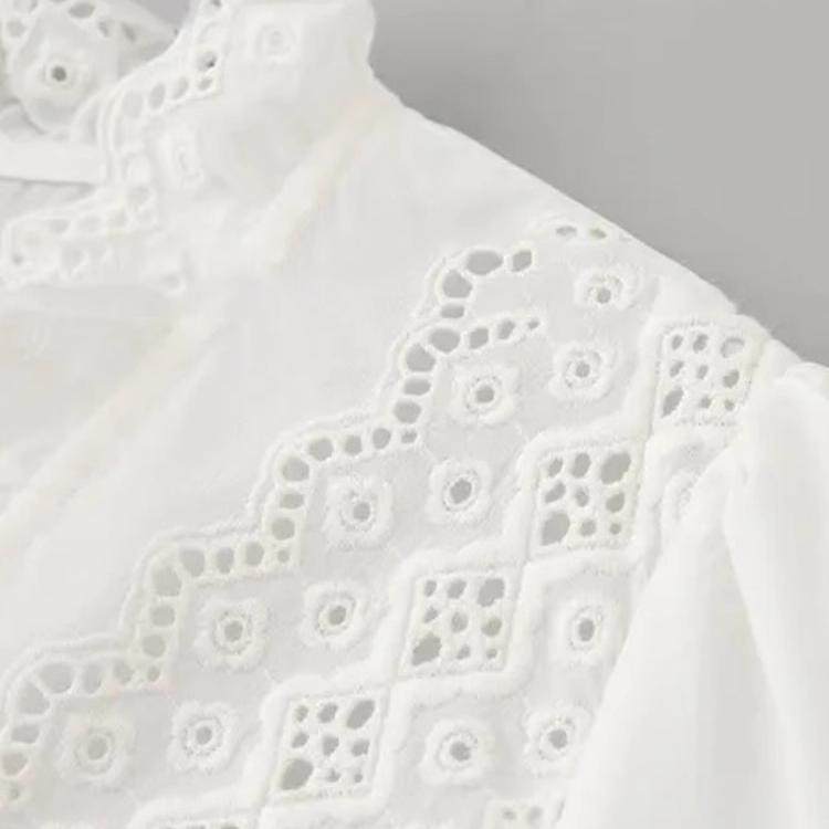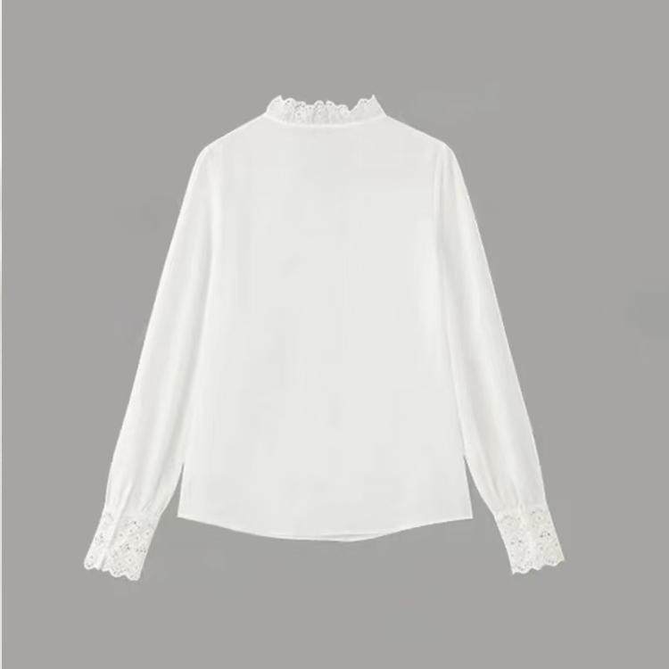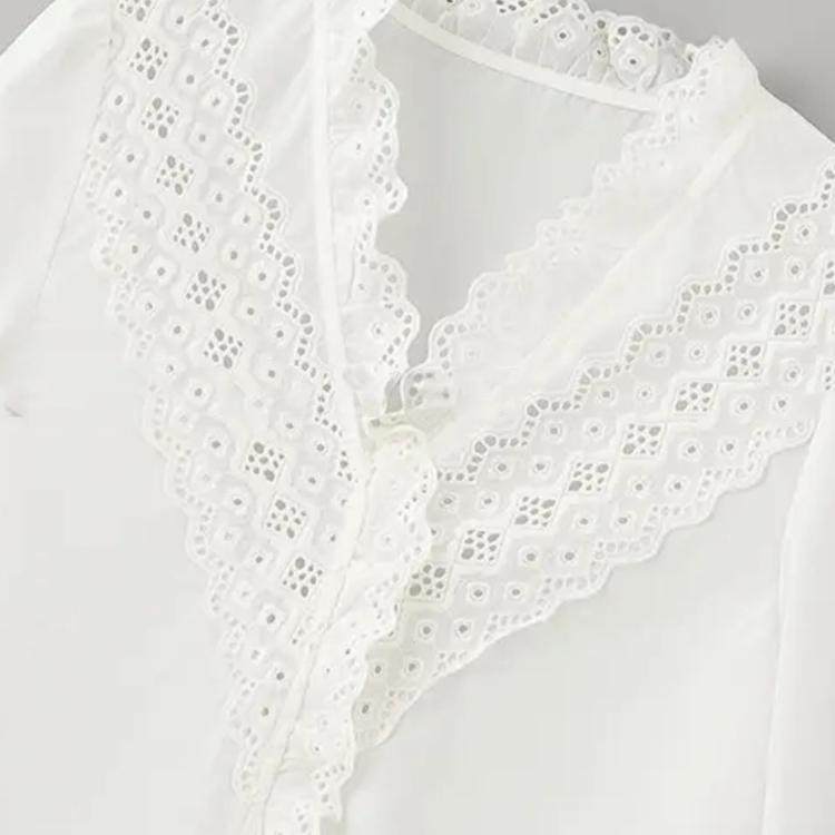大洪官方自营店芬妮旅程白色衬衫 女春秋女人味V领镂空蕾丝衬衣