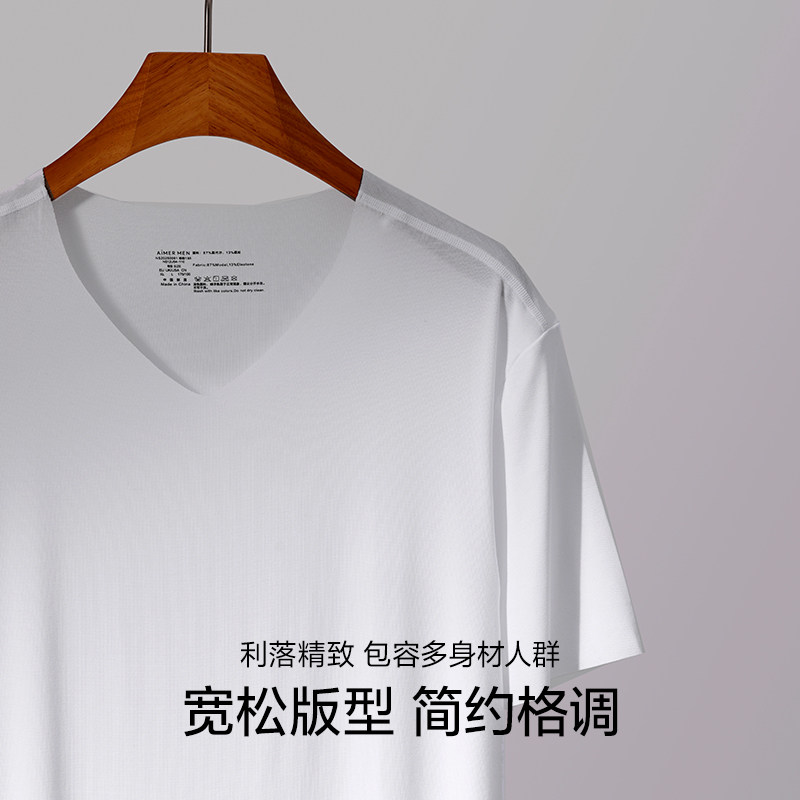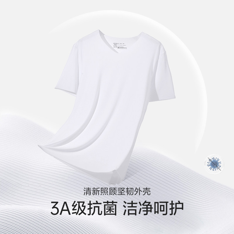 V领2025年秋冬 抗菌T恤打底短袖 2件装 爱慕先生60支莫代尔净痕男士