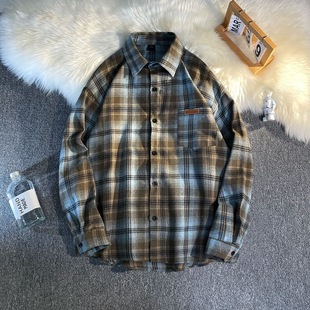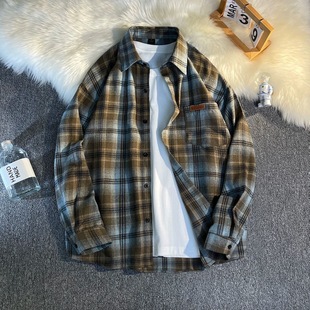 衬衣美式 2025新款 宽松情侣长袖 男春秋季 复古潮牌休闲外套 格子衬衫