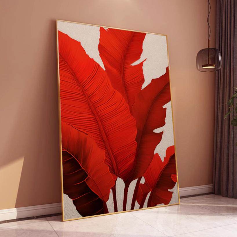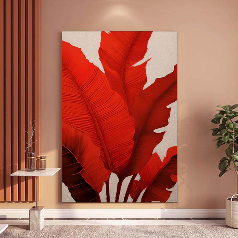 MHD手绘油画 砂岩红色立体肌理画轻奢玄关现代抽象画 家大业大