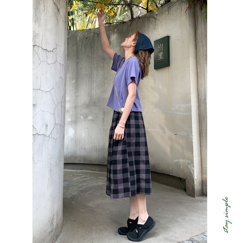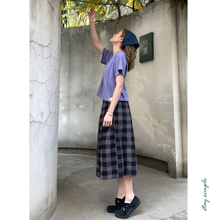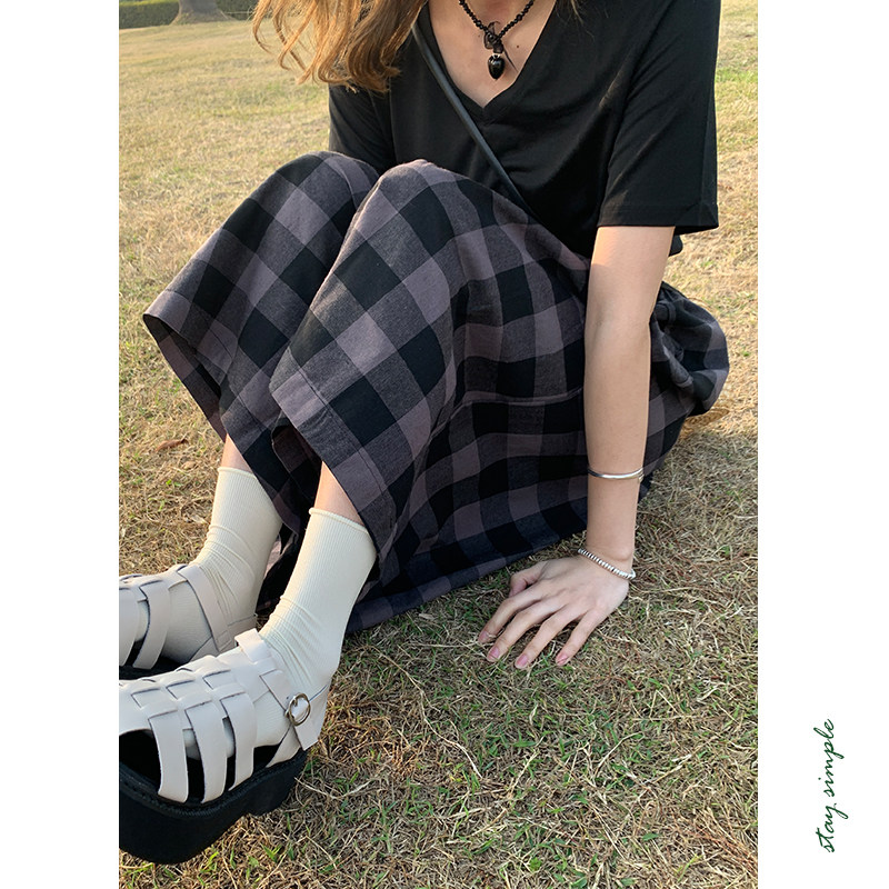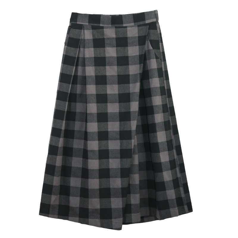 夏松紧腰裙裤 花吉Q524黑灰色格子斜门襟设计休闲阔腿裤 女2026新款
