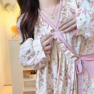 裤 法兰绒睡衣套装 珊瑚绒加厚长袍女 保暖两件套家居服大码 2024新款