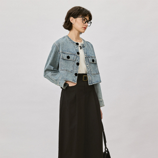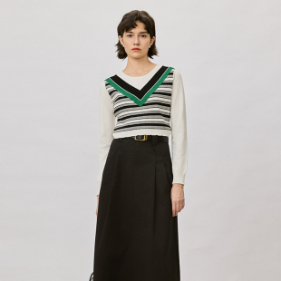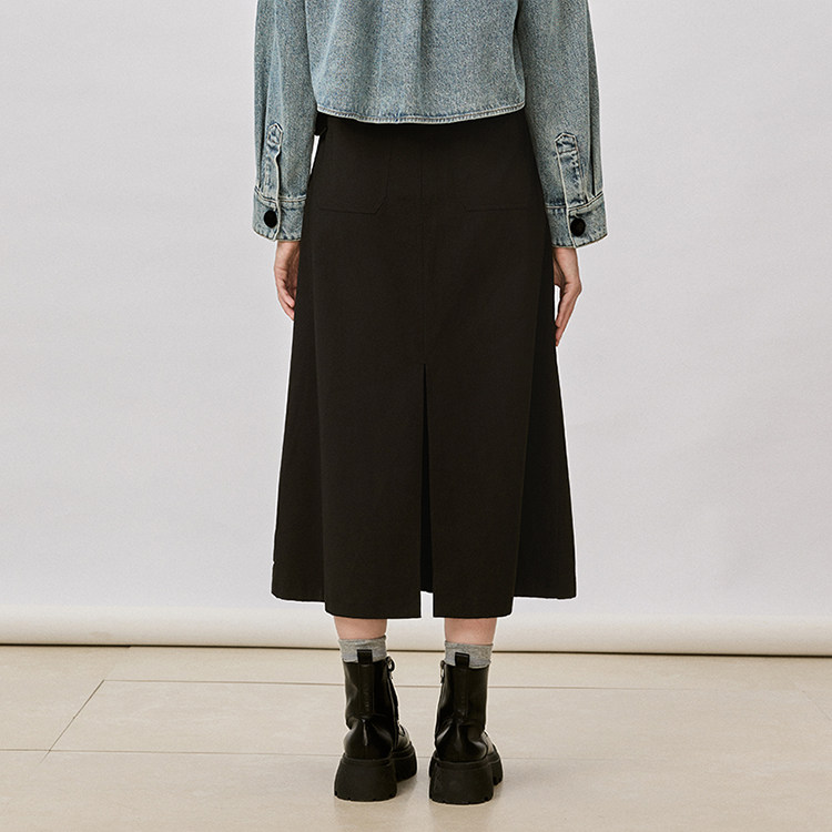 101B510258 黑色显瘦裙子伞裙a字长裙 pit复古法式 半身裙女2025春季