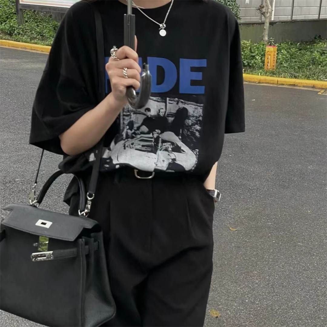 店主自留 短袖 疯狂打call 休闲宽松 T恤 黑色撞色印花 SHINE