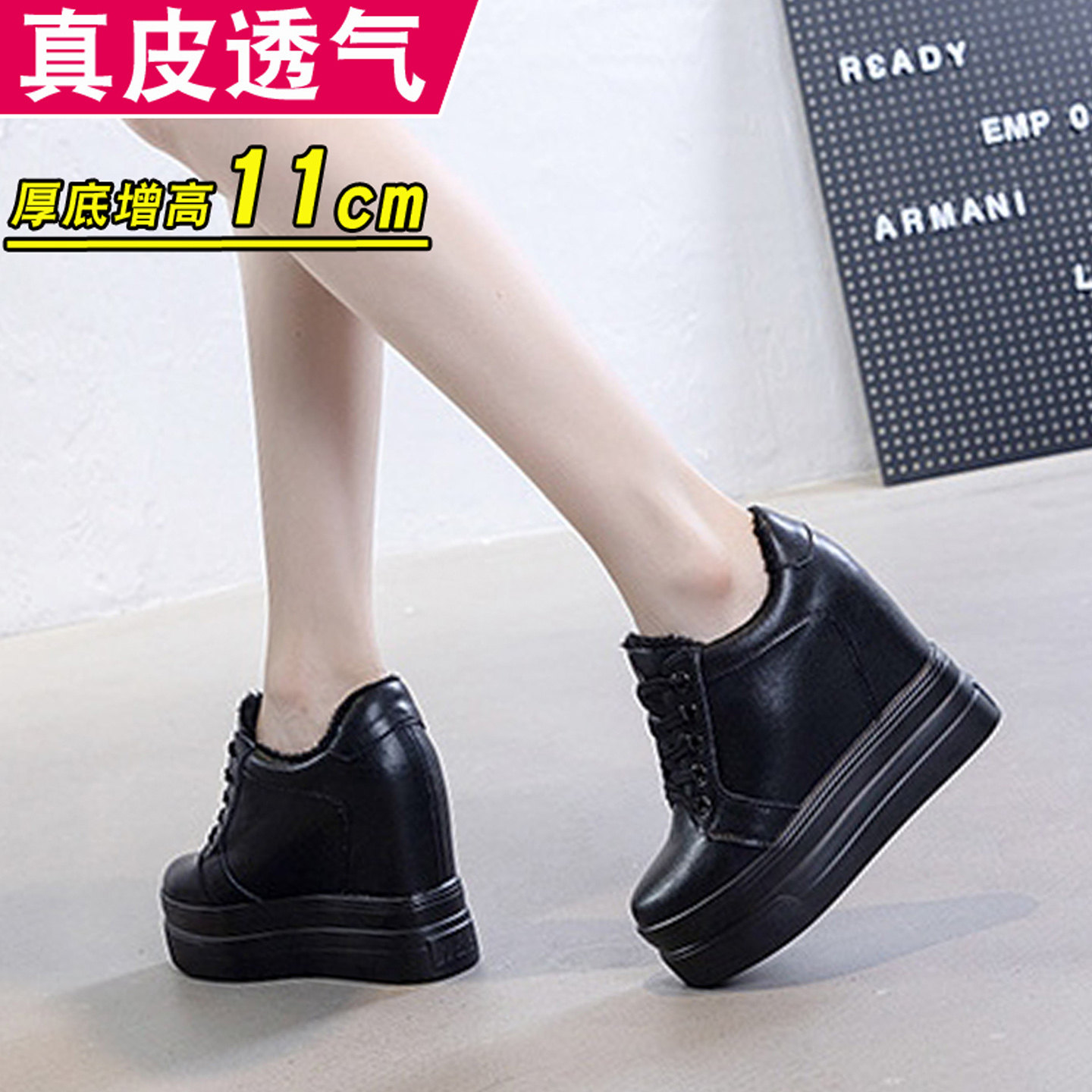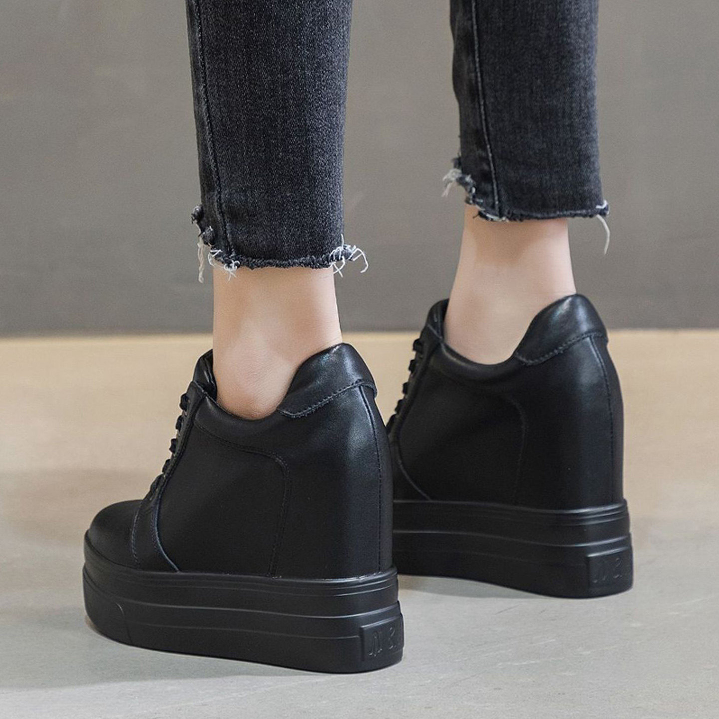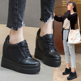 黑色菱格纹小香风浅口单鞋 新款 女 内增高加绒玛丽珍2025冬季 羊皮