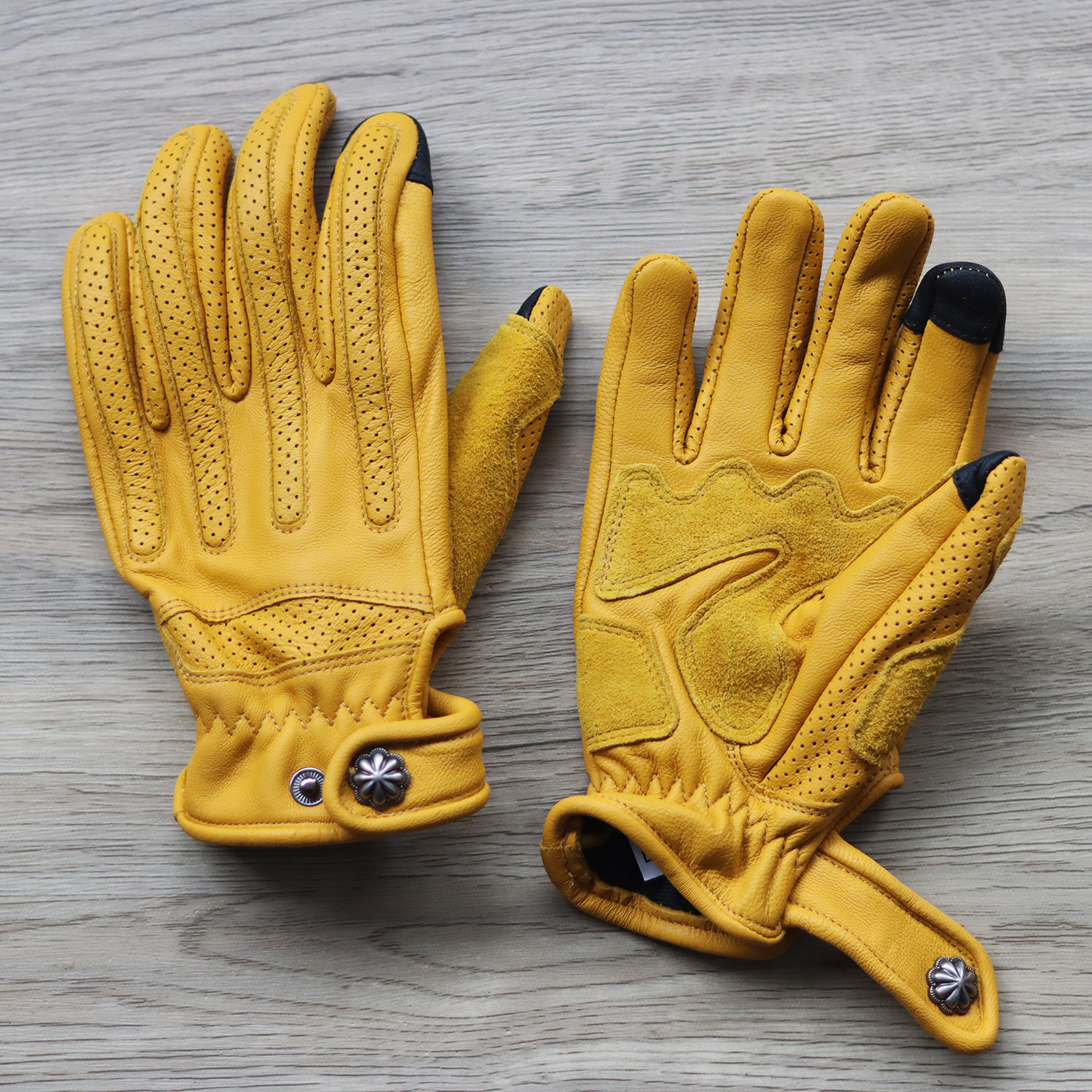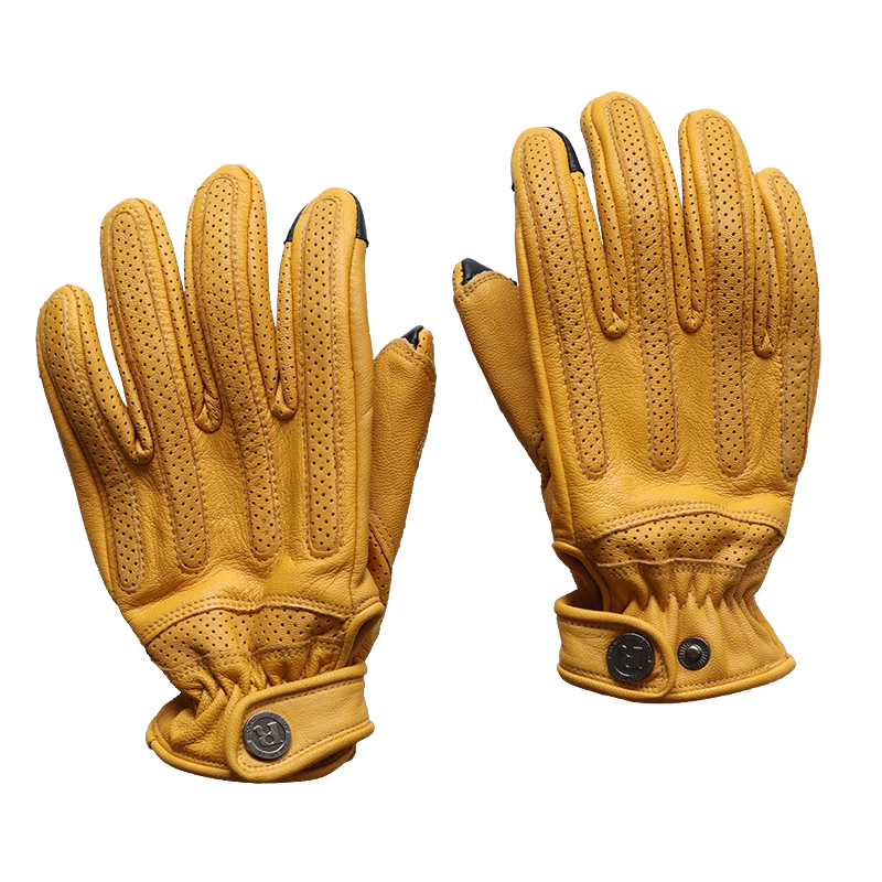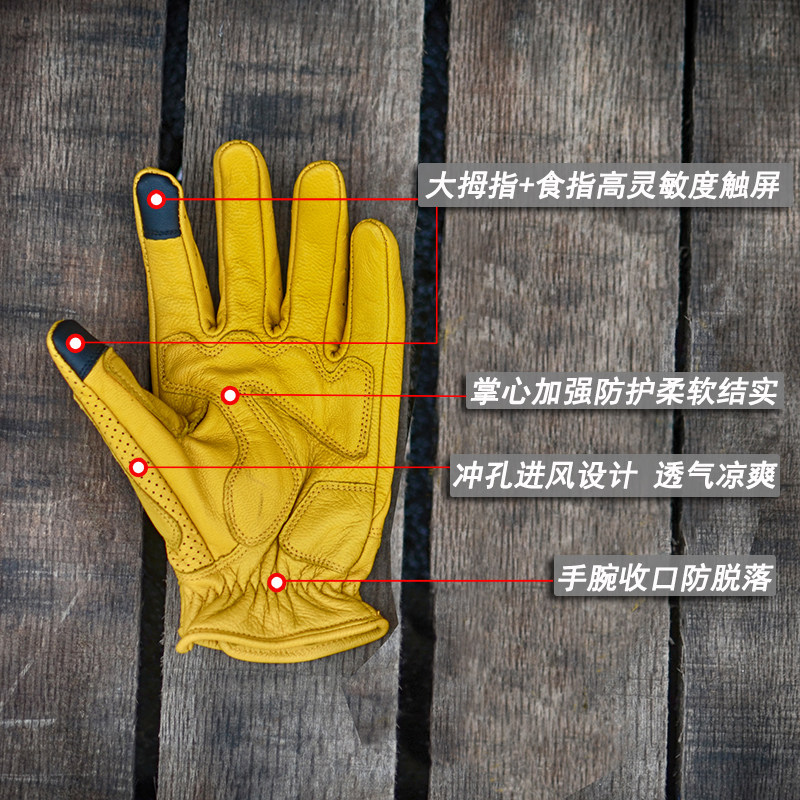 复古摩托车骑行手套男女四季 备防风 牛皮真皮防摔骑士机车黑棕色装