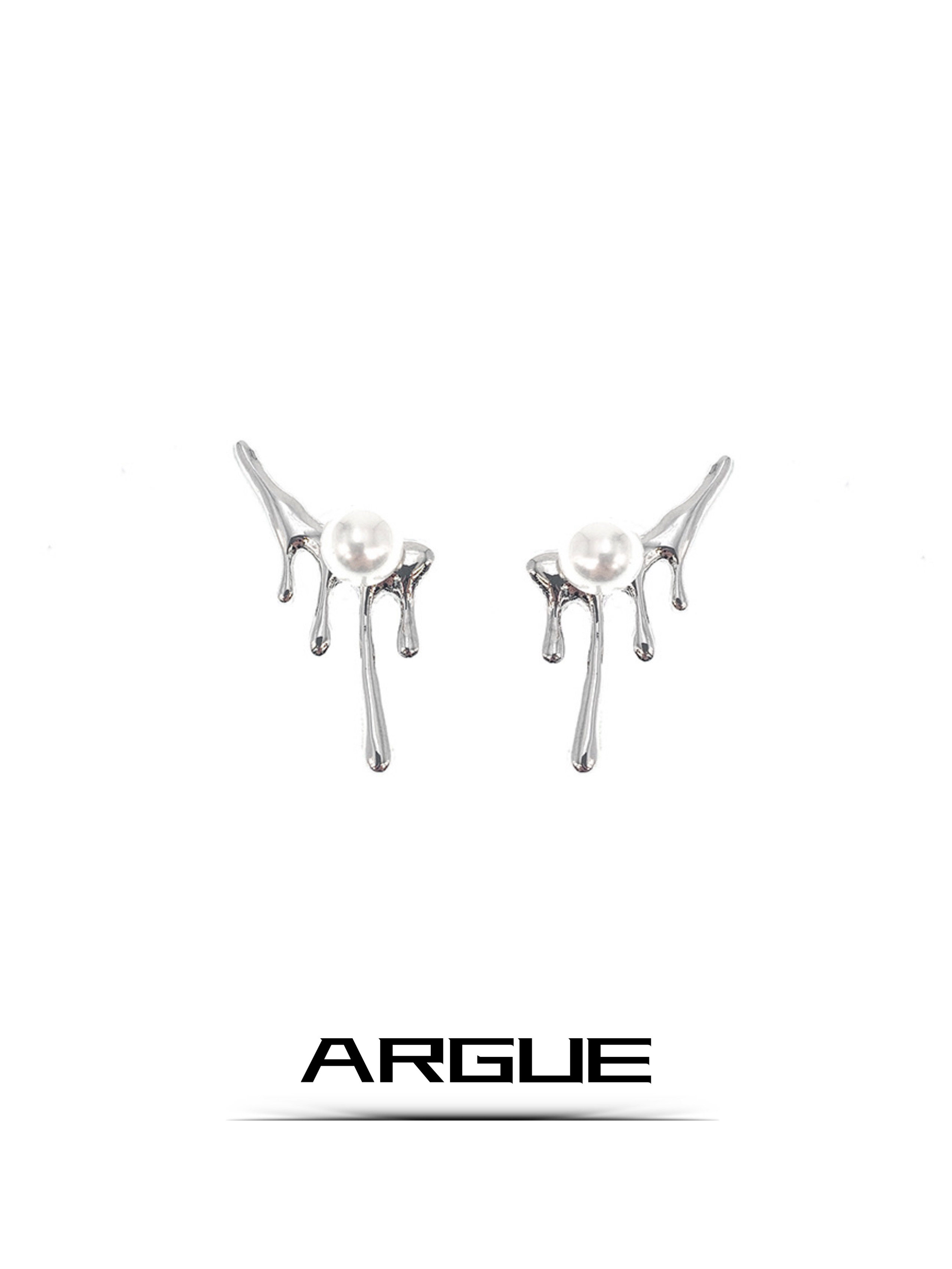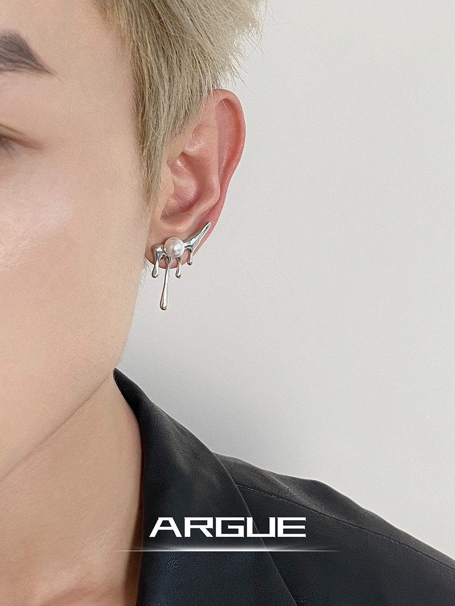 ARGUE小众轻奢不规则水滴熔岩珍珠耳环男设计感耳钉个性 潮流耳饰