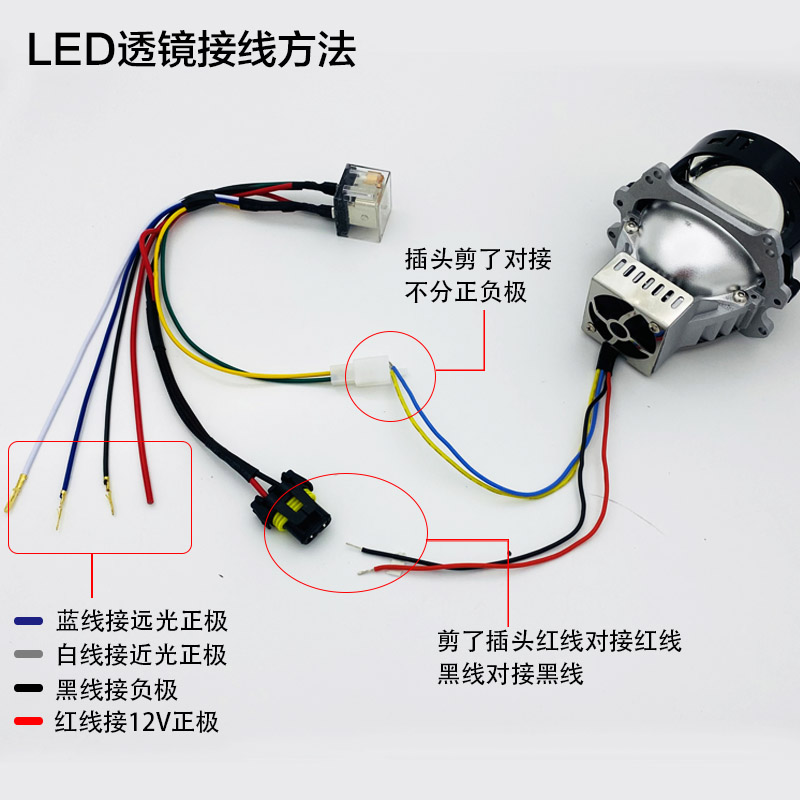 电动车摩托车变光线改装 双光透镜线组 海5Q5氙气灯泡LED一拖一