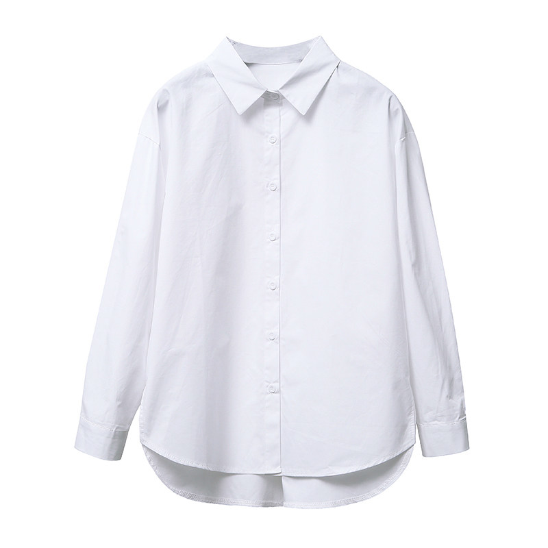 POLO领宽松白色衬衫 韩版 女 上衣2022新款 衬衣女设计感小众春秋长袖