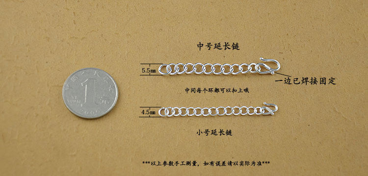 纯银项链加长链尾925银手链DIY镀18K金链子调节链条配饰延长链