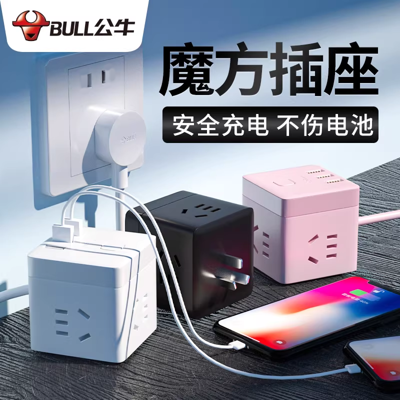 德木魔方插座USB插排线板多功能电源转换器家用无线扩展智能排插