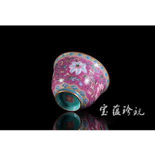 里作家用品茗杯功夫茶具主人杯纯手绘茶杯单杯粉兰花斗笠杯个人杯