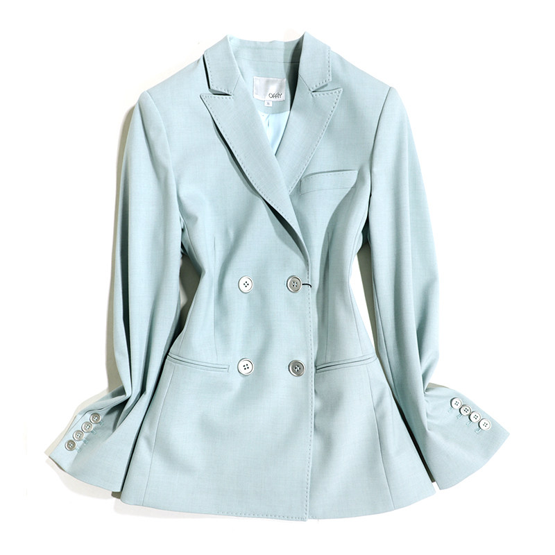 套装 春夏西装 气质女 SUN时髦薄荷色通勤双排扣西服外套时尚 OFFIY