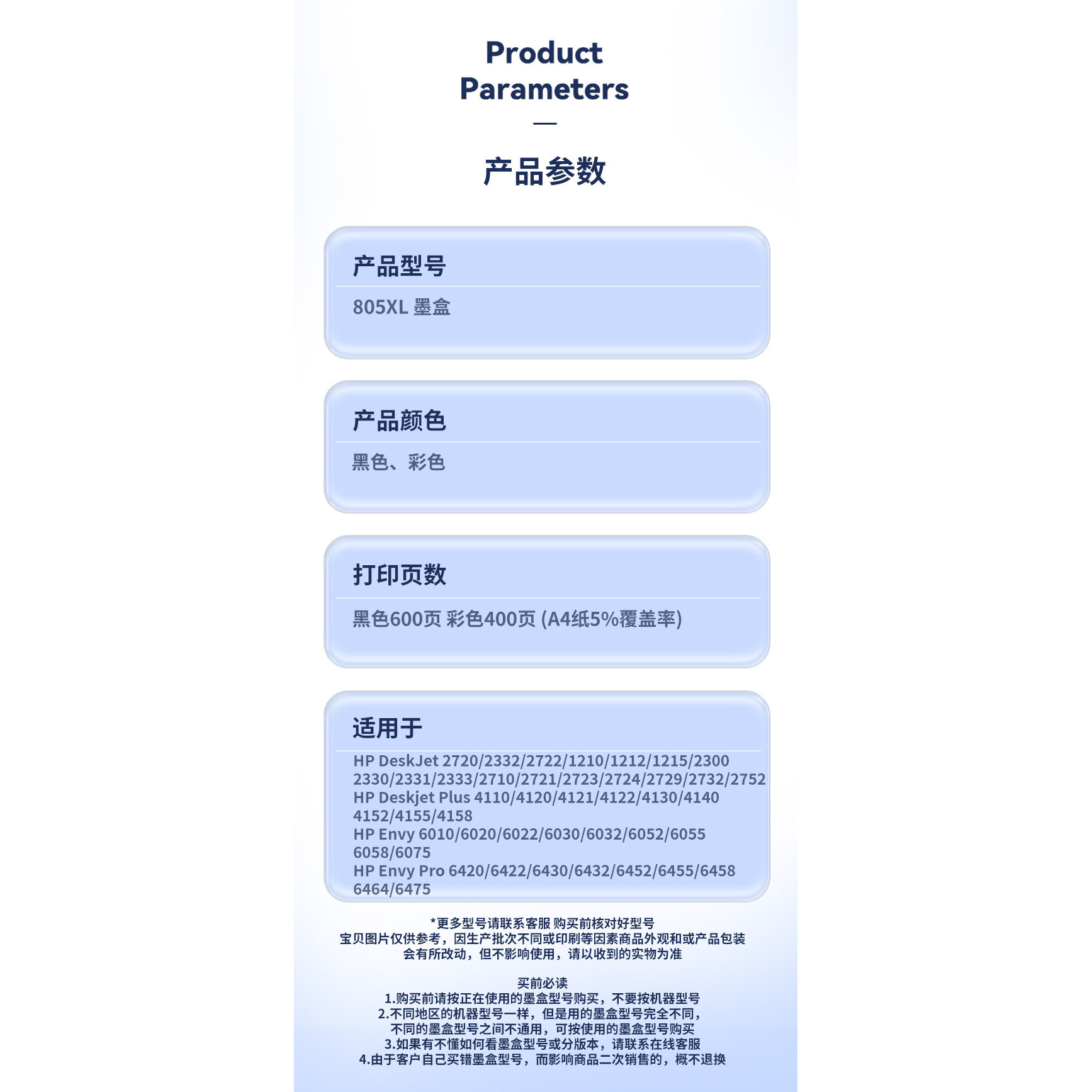 2723 彩色喷墨打印机油墨盒 1212 2720 2721 2332 1210 2330 2729墨盒 雄彩适用惠普805墨盒HP 2722 Deskjet