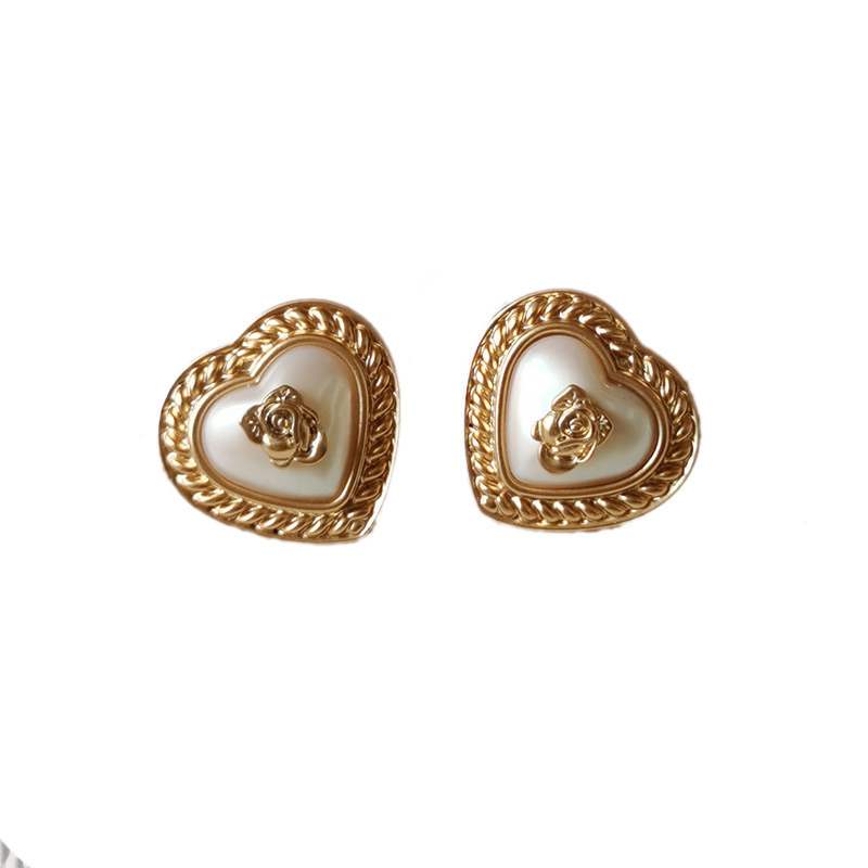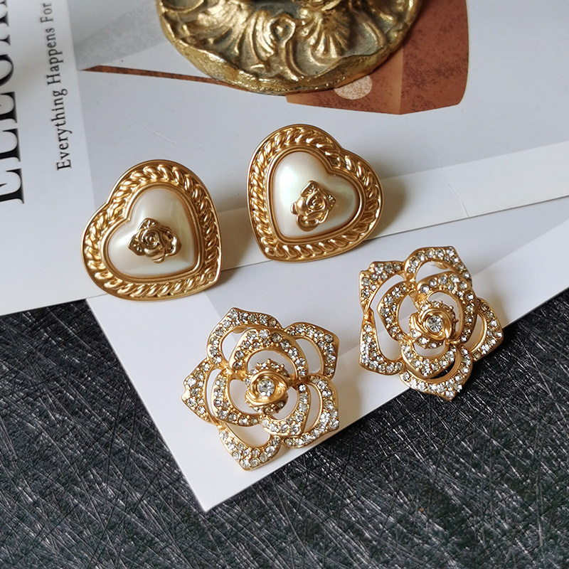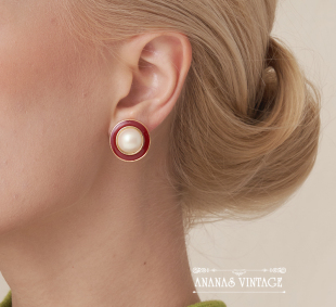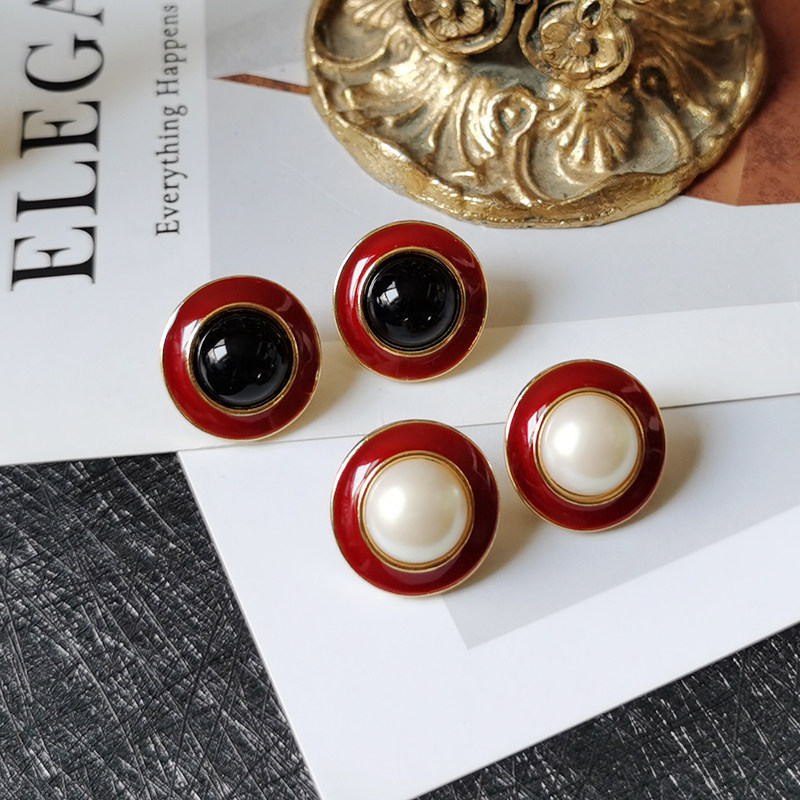 菠萝vintage全新法式 复古耳环文艺宫廷珍珠珐琅18K镀金银针耳夹