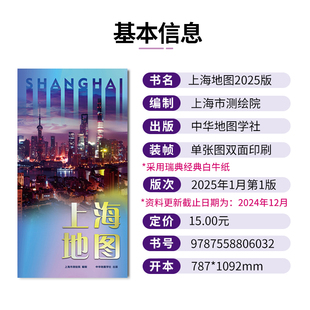 轨道交通示意图 上海地图街道详图 高速国道公路交通 城区交通旅游 中华地图学社 上海地图2025版 新增市域机场线 上海市测绘院编制
