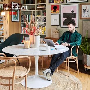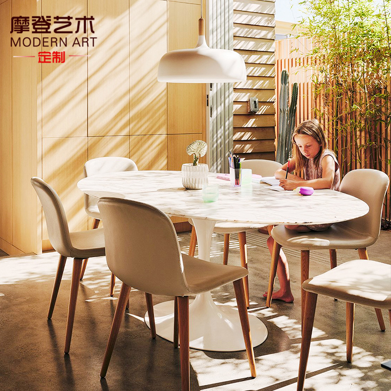 北欧简约客厅椭圆大理石餐桌设计师洽谈岩板饭桌子工作阳台奶油风