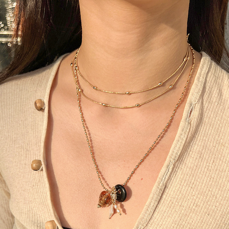 LAZY CIRCLES金色双层水珠叠戴项链女轻奢高级感锁骨链春夏配饰