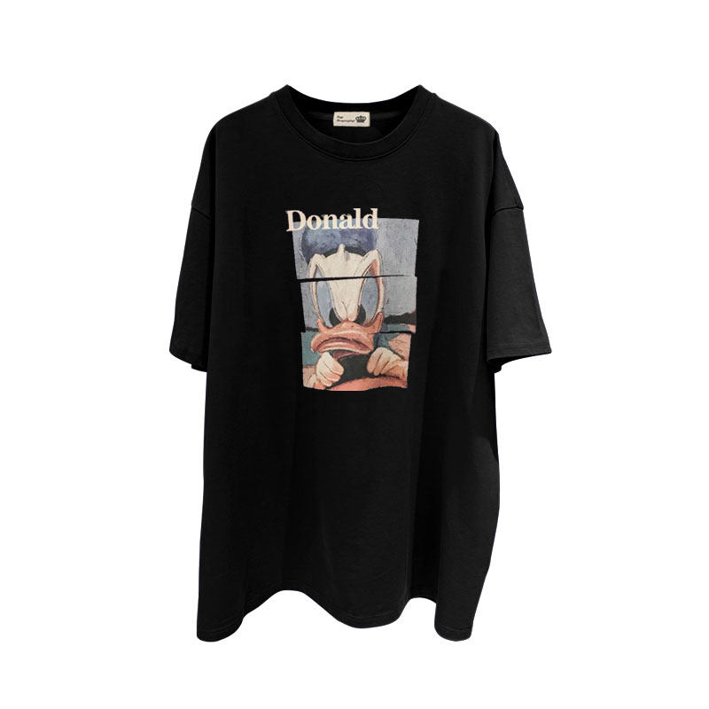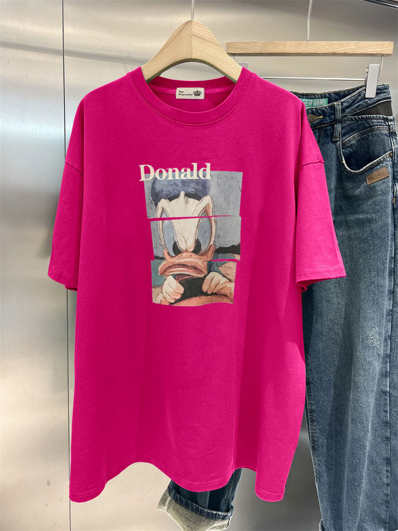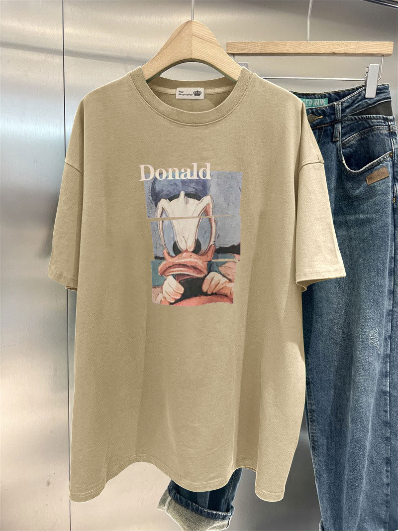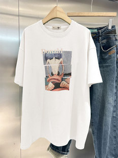 卡通唐老鸭短袖 遮屁股下衣失踪 T恤女2025春夏印花宽松纯棉中长款