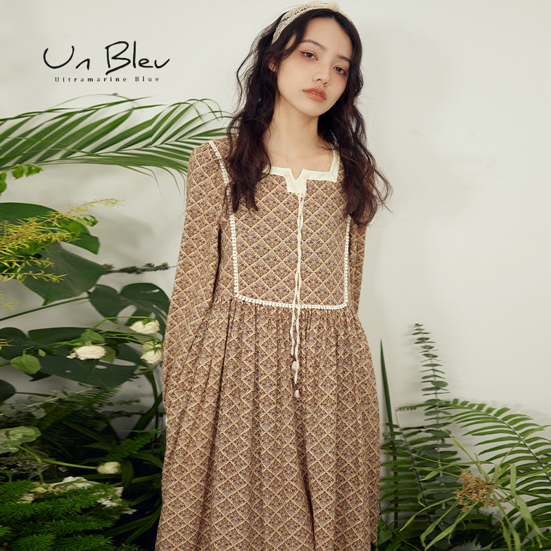 女装 气质法式 宽松碎花异域裙子 新款 UnBleu波西米亚连衣裙女秋季