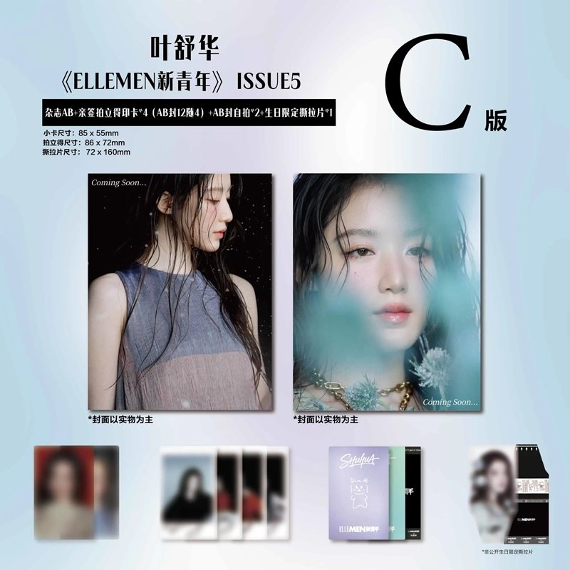 12张印签拍立得 5李永钦 ISSUE5 ELLEMEN新青年杂志2025年ISSUE 撕拉片 2张自拍小卡 B封面 叶舒华封面D版 睿士新青年 计入销量