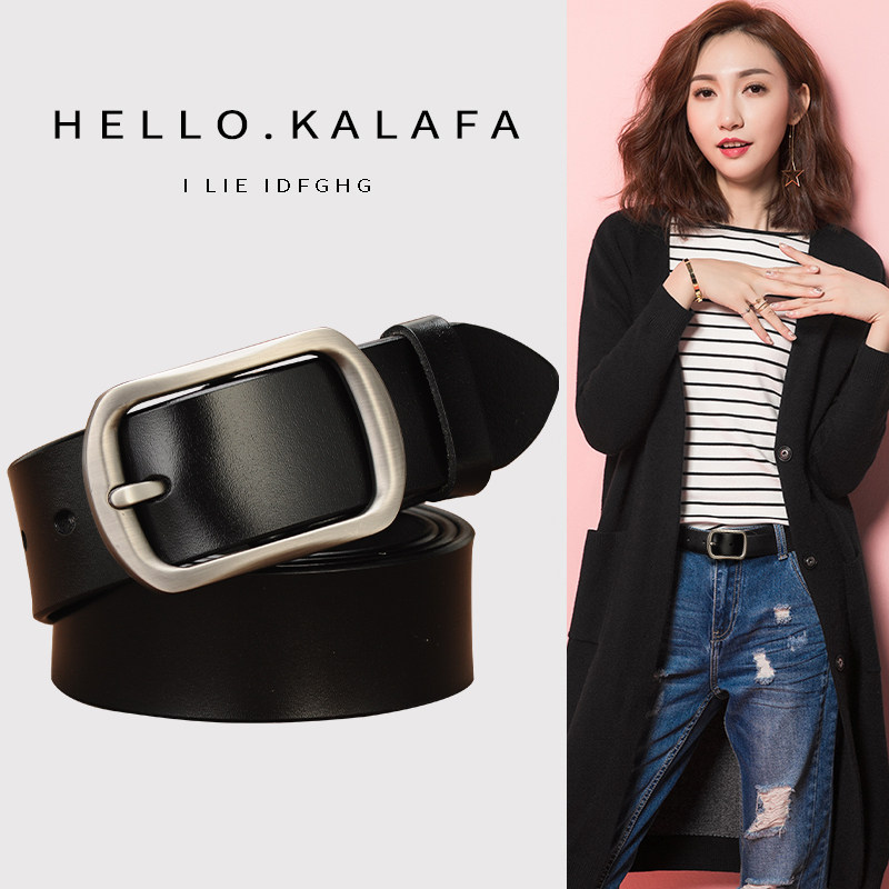饰配黑色牛仔裤 皮带女款 百搭装 针扣宽腰带复古时尚 带 真皮2026新款