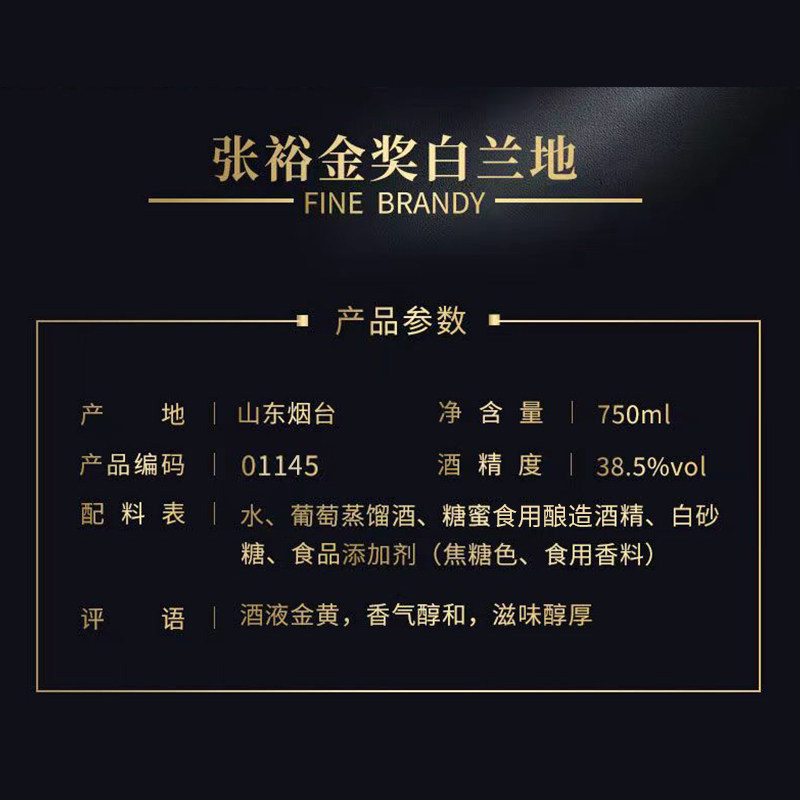 长城酩润黑标白兰地40度洋酒Brandy中粮蓬莱国产葡萄蒸馏酒700mL