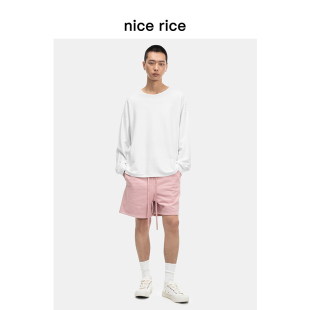 男NFC12043 结构分割宽松380G全棉抽绳休闲针织短裤 nice rice好饭